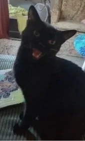 Simon is a BIG FLUFFY wonderful silly boy. He likes to cuddle after he gets a good sniff and may gentle chomp you (he can be encouraged to level up in intensity because he thinks you are another big cat, but if you are gentle he will mirror your energy). He coos like a pigeon and walks about with his huge tail proudly waving behind him. He gets the zoomies like all young cats but is at his core a gentle mushy love kid.